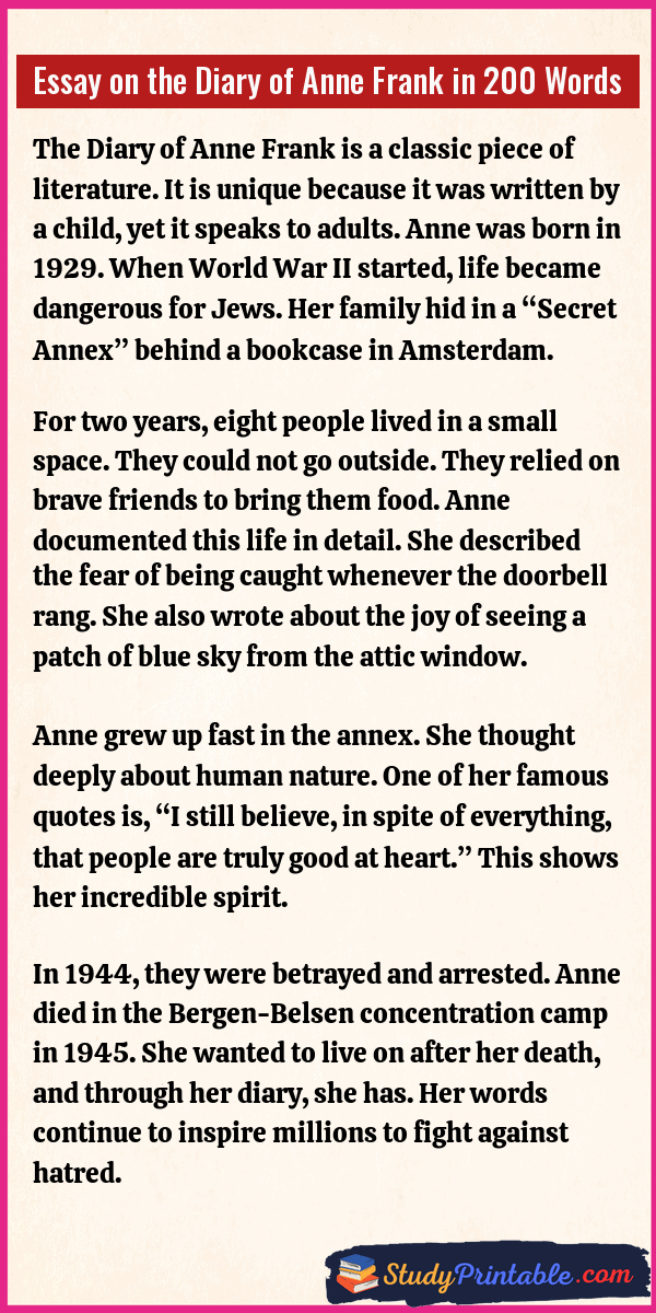 Essay on the Diary of Anne Frank in 200 Words