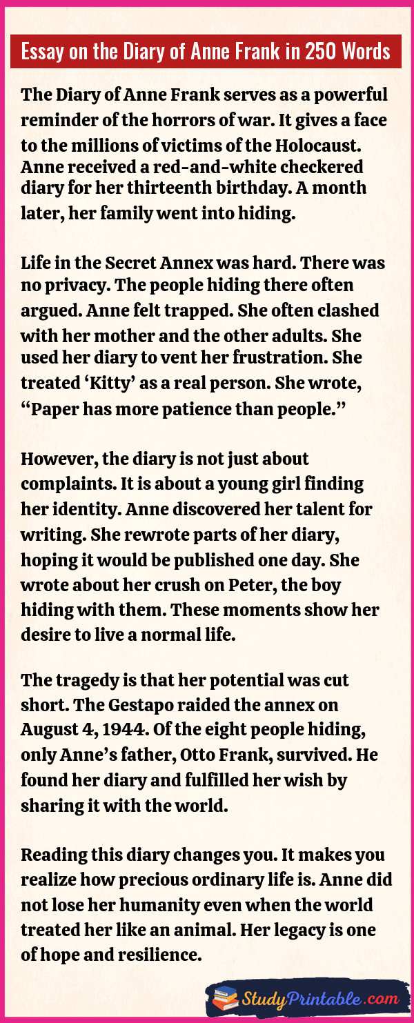 Essay on the Diary of Anne Frank in 250 Words