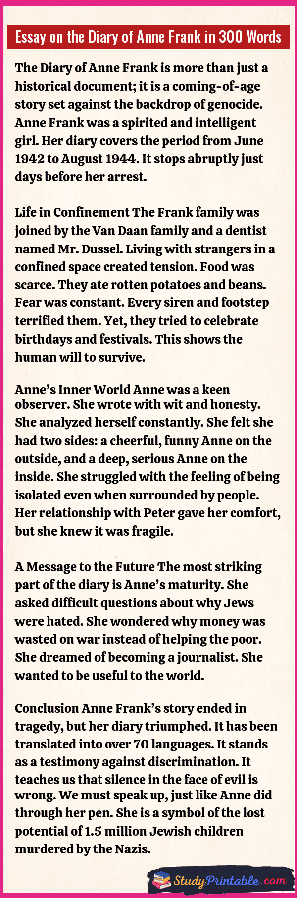 Essay on the Diary of Anne Frank in 300 Words