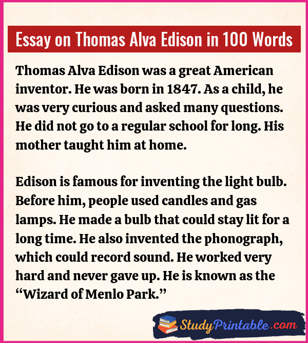 Essay on Thomas Alva Edison in 100 Words