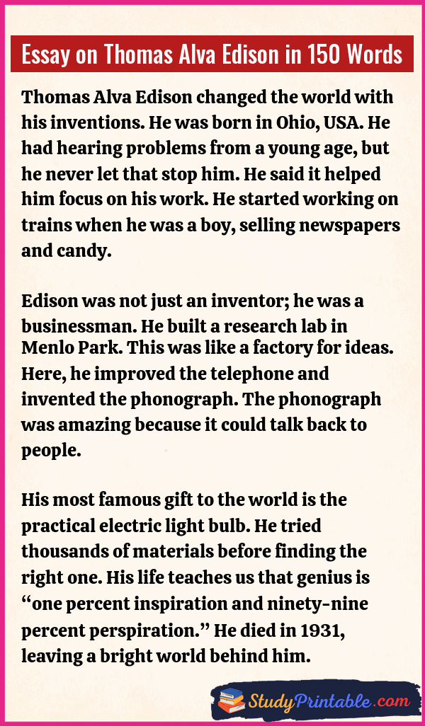 Essay on Thomas Alva Edison in 150 Words