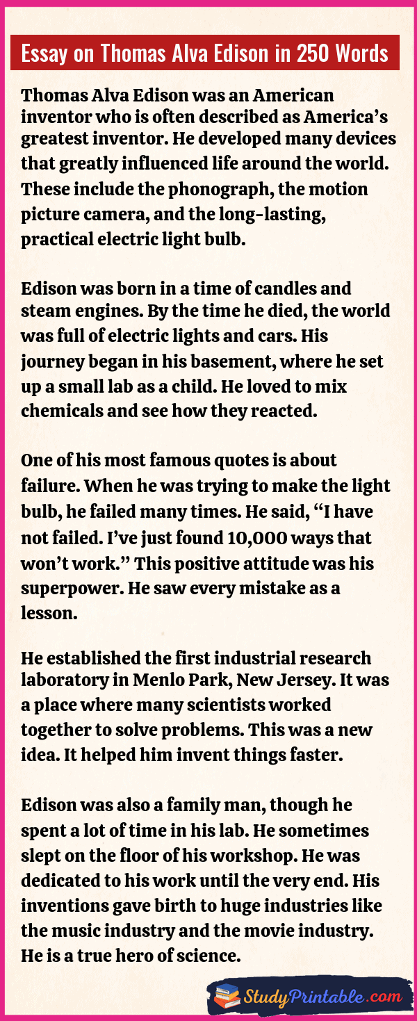 Essay on Thomas Alva Edison in 250 Words