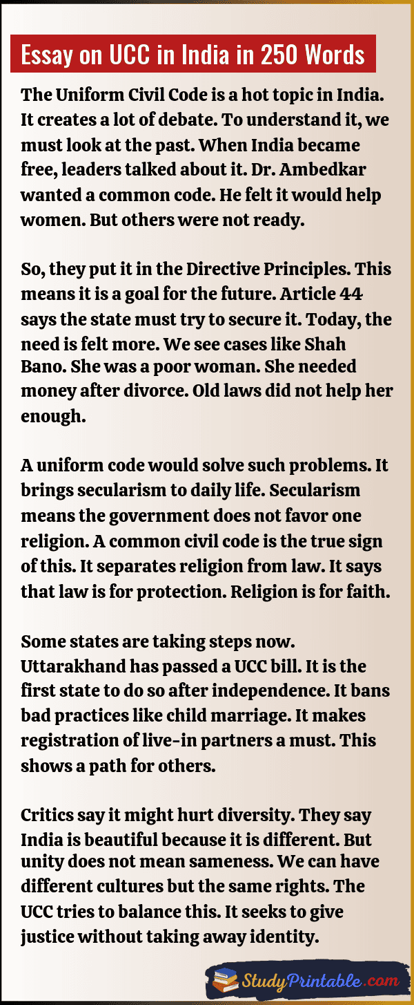 Essay on UCC in India in 250 Words