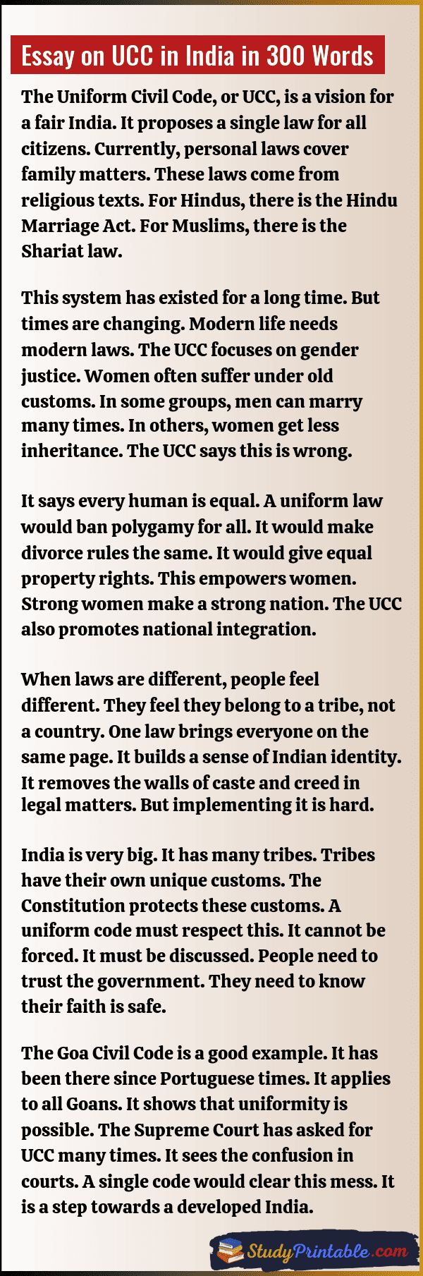 Essay on UCC in India in 300 Words