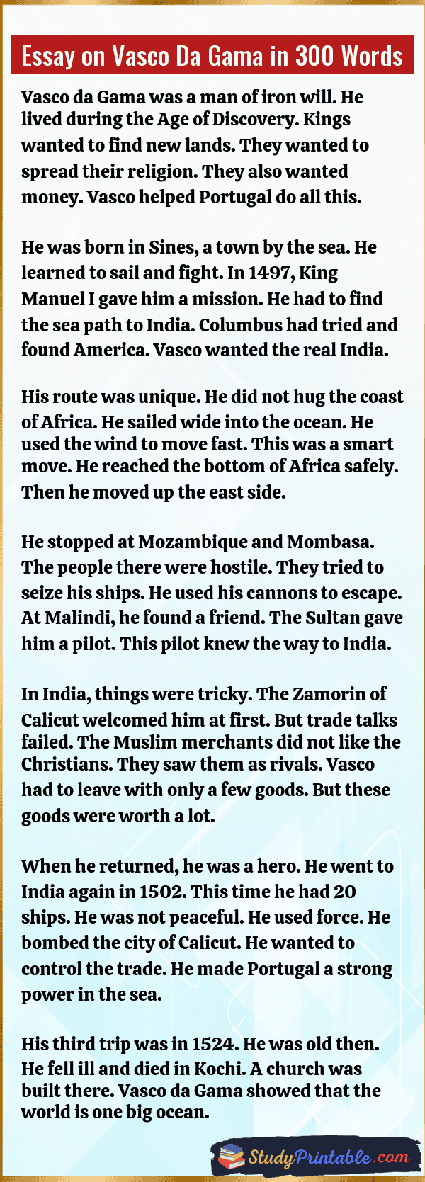Essay on Vasco Da Gama in 300 Words