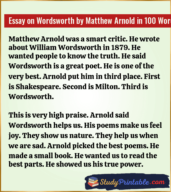 Essay on Wordsworth by Matthew Arnold in 200 Words