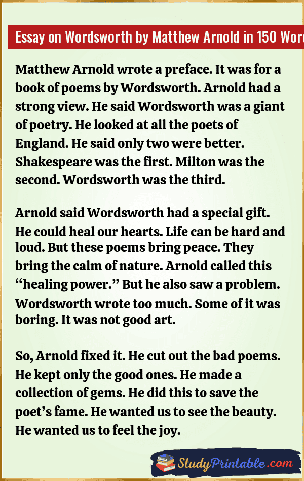Essay on Wordsworth by Matthew Arnold in 150 Words