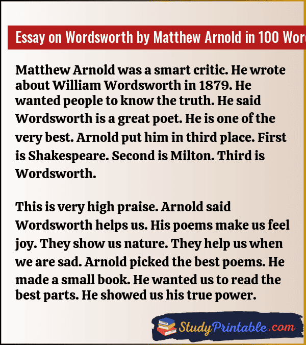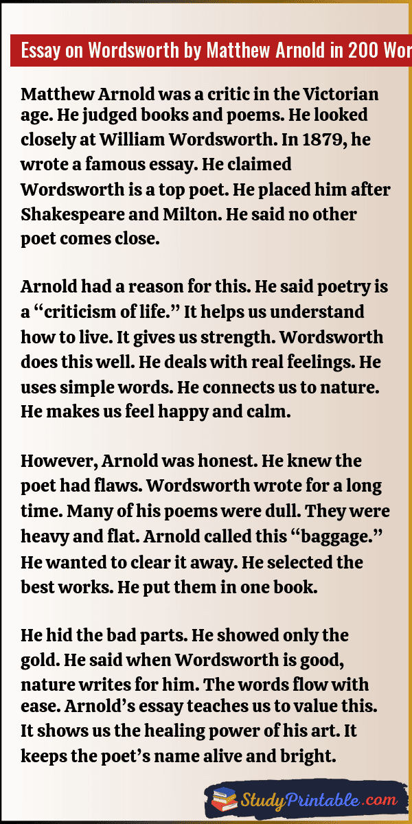 Essay on Wordsworth by Matthew Arnold in 200 Words