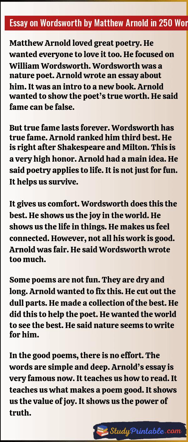 Essay on Wordsworth by Matthew Arnold in 250 Words